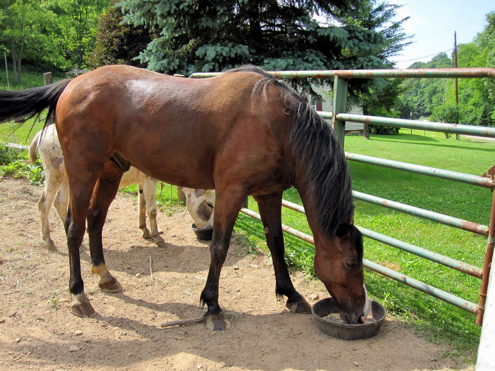 I fed Pokey his oats and Gilly could see this, but guess what, no supper for a bad horse! He just stood there swishing the flies off and looking up at me like, hey, come here, why am I just standing here? He didn't paw or fuss around, just stood there patiently.